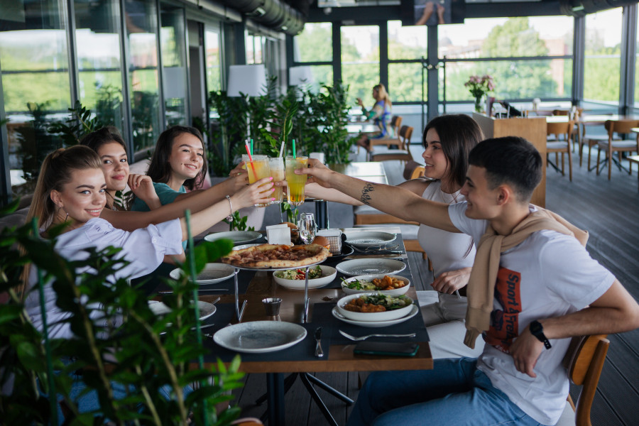 Інтернаціональна та авторська кухні. Італійська піца, американський бургер, паназійський рамен, український борщ, французький десерт крем-брюле, авторська коктейльна карта, кава крафтового обсмажування, окреме дитяче меню, морозиво власного виробництва.